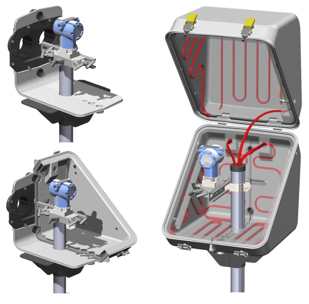 Rigid Enclosures provide a controlled environment where instrumentation is mounted inside an insulated hard-shell enclosure. Once the enclosure is fitted with the instrument, the enclosure is then fixed to a pipe stand and plumbed with an impulse tube carrying a sample of the process. This design creates issues for the owner should the enclosure ever need to be replaced. Read More