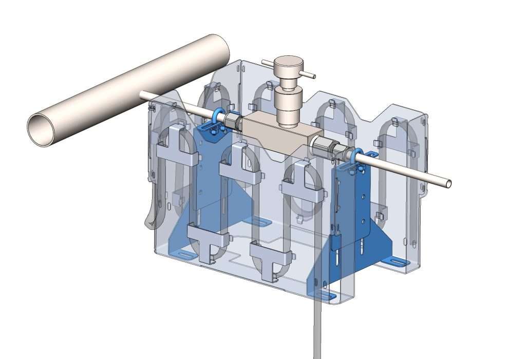 Mounted with 2 adjustable hanging brackets (Pictured in blue) for root valve applications